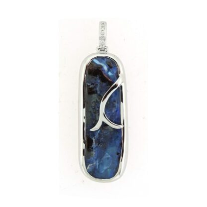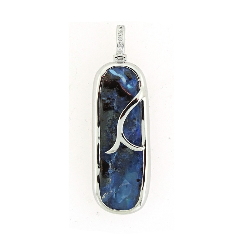 Free Form Pendant with an Australian Boulder Opal 26.87 Carats & Diamonds .04TW Set in 14KT White Gold