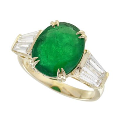 Unique Ring with claw prong Natural Emerald 3.61 Carats & Baguette Diamond 1.17TW Set in 14KT Yellow Gold