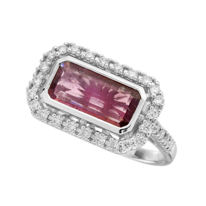 Pink Tourmaline & Diamond Ring in 14KT White Gold quantity