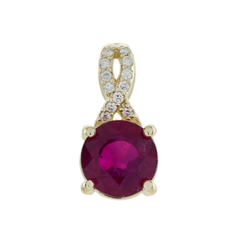 Pendant with a Natural Ruby 2.95 Carats & Diamond .08TW Set in 10KT Yellow Gold