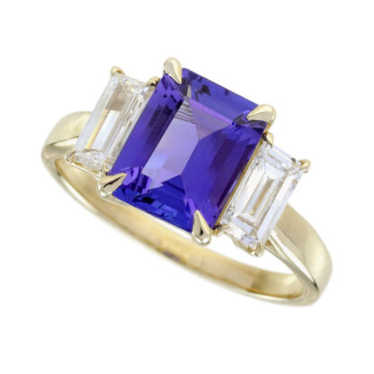 Unique Ring with an emerald cut Tanzanite 2.15 Carats & Baguette Diamonds .75TW Set in 14KT Yellow Gold