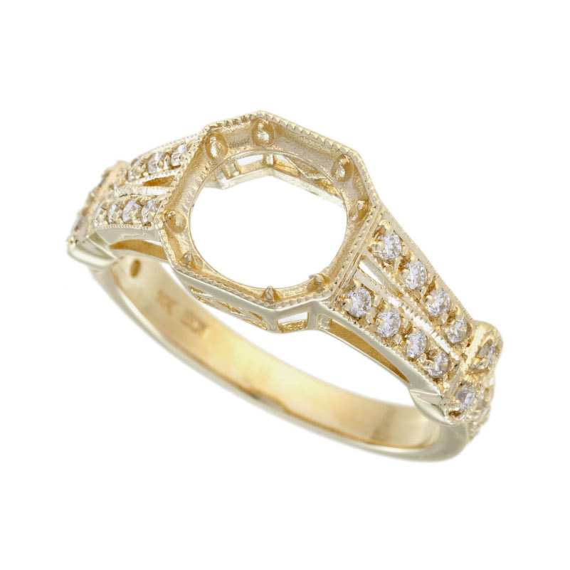 Vintage Style Semi-mount with Diamond .28TW Set in 14KT White or Yellow